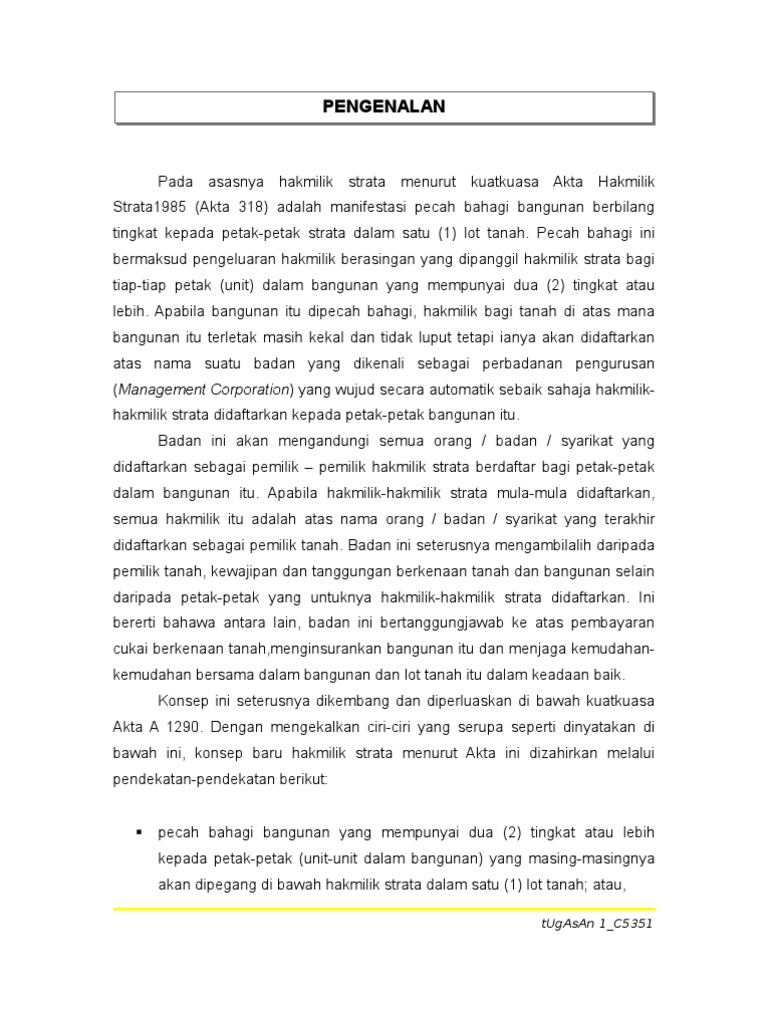Kepentingan Hak Milik Strata : Hak milik, dibuktikan dengan sertifikat hak milik.. Soieb tambi, , dewan bahasa dan pustaka, malaysia edition, trade book in malay. Jika membeli rumah kediaman jenis hakmilik strata, bagaimana? Di bawah akta hakmilik strata (pindaan) 2013, hakmilik strata akan dikeluarkan selepas serahan pemilikan kosong (vp) hartanah itu. Sedangkan strata tittle hanyalah hak kepemilikan atas satu ruangan yang dibeli saja dan tidak meliputi ruang publik lain. Akta hak milik strata satu kefahaman ( edition) | open library.