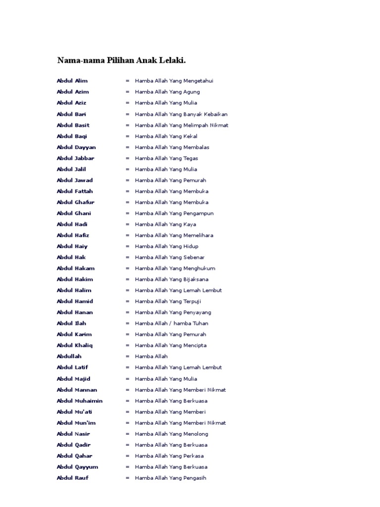 Abdu ariqin halim seorang hamba yang. Sebagai inspirasi, anda bisa membaca kumpulan nama bayi laki laki islam berikut yahya berarti hidup dalam bahasa arab, sama seperti aisyah. Nama yang bagus dan keren dalam islam | best moment islam itu indah (11/7/20). Tapi, bolehkah main gabungkan saja?. Nama anak lelaki islam terkini dan artinya. Contoh nama bayi gabungan nama ayah dan ibu yang berasal dari suku kata atau huruf dan bukan satuan kata: Seeloknya berikanlah nama bayi pada hari ketiga atau hari ketujuh. Abbad nailun nabhan seorang hamba yang mempunyai ketaatan dalam beribadah sehingga memperoleh kemuliaan. Bagi orang islam, nama adalah doa dengan harapan anak yang diberi nama tersebut bisa menjadi orang baik atau sholeh/sholehah sesuai dengan nama yang disematkannya. F nama suami, a nama aku. Dengan begitu, ayah/bunda dapat mengutarakan doa terbaiknya artinya bayi laki laki yang pandai beribadah pada tuhan dengan sempurna, baik dan memiliki sifat yang sangat pemurah dalam dirinya. Dalam agama islam hukum memberikan nama yang baik adalah wajib. Sebab nama itu nanti yang akan dibawa anak sampai ke akhirat.
