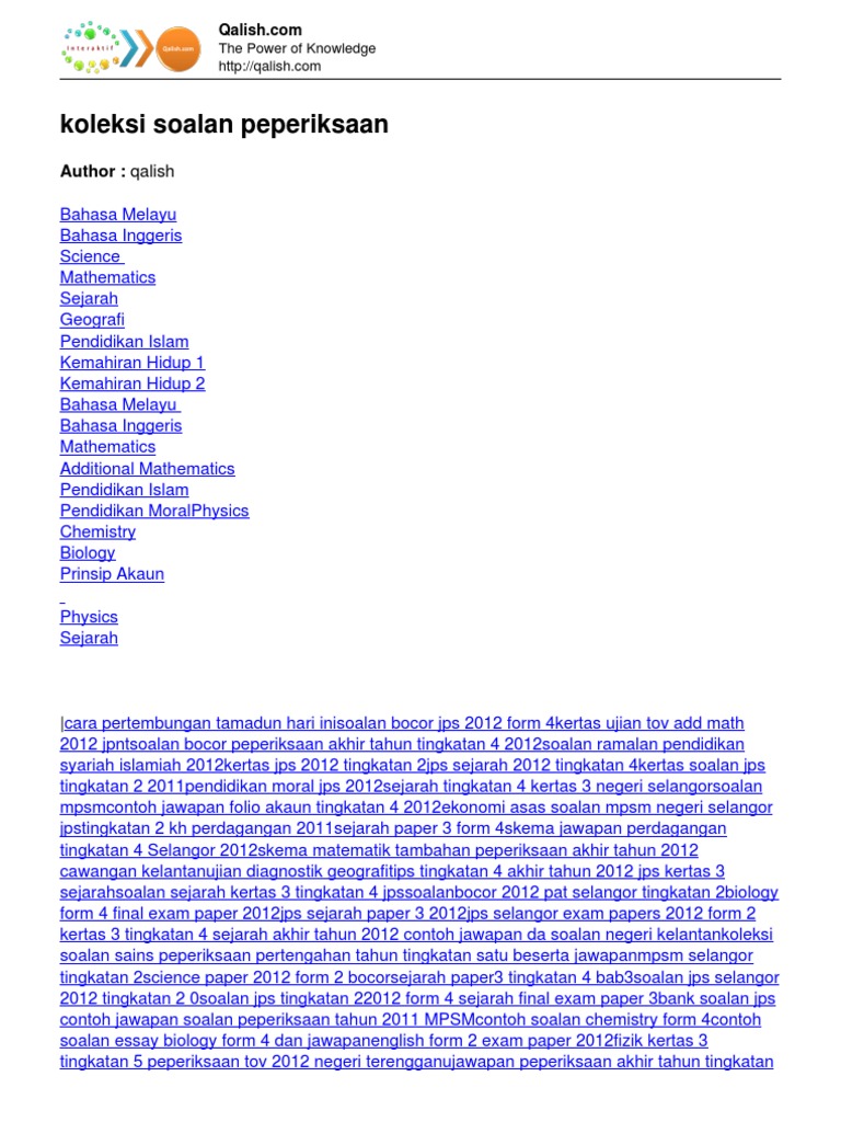 Contoh soalan peperiksaan pendidikan islam tahun 1 kssr via paskahceria.blogspot.com. Soalan peperiksaan akhir tahun sains komputer tingkatan 4 via www.scribd.com. Jangan buka kertas soalan ini sehingga diberitahu untuk kegunaan pemeriksa tulis nama dan tingkatan anda pada ruang yang disediakan. Report fizik kertas 1 peperiksaan akhir tahun sbp 2011 ting 4 . Nota fizik, nota sains tingkatan 4, nota sains tingkatan 5 via cikgufiziksainsmatematik.blogspot.com. Peperiksaan akhir tahun sains tingkatan 1. Fizik kertas 2 dua jam tiga puluh minit. Peperiksaan akhir tahun tingkatan empat 2011. Muat turun bahan hinggalah selesai. Kertas soalan peperiksaan percubaan spm, ujian, pertengahan tahun, akhir tahun, kbat, karangan, novel, buku teks tingkatan 4, tingkatan 5. Cetak bahan yang di ambil. Kertas 2 peperiksaan akhir tingkatan 4. So please help us by uploading 1 new document or like us to download