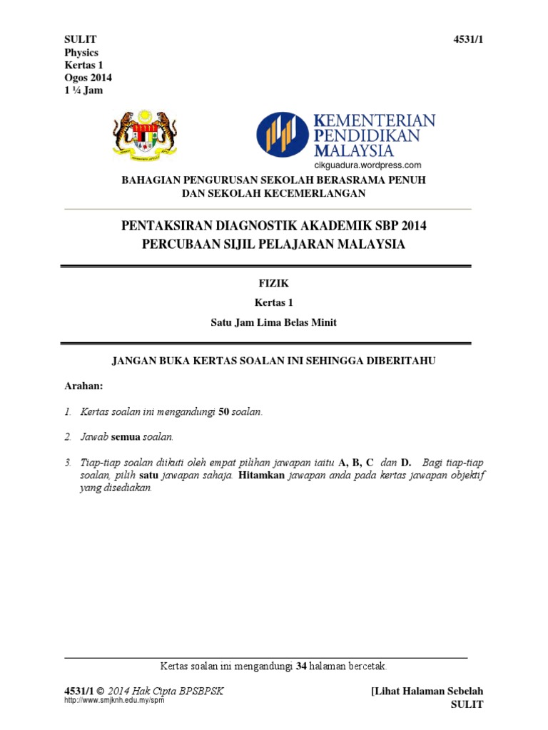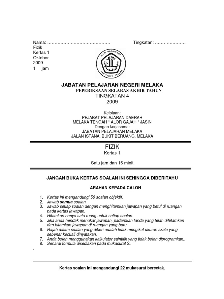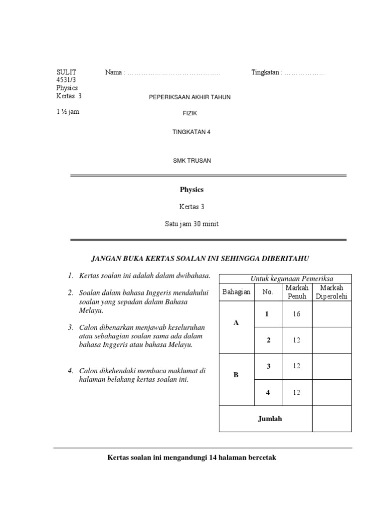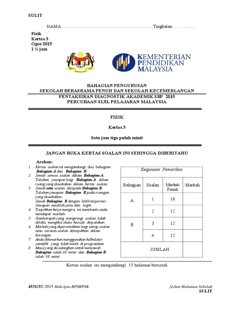 Related : Peperiksaan Akhir Tahun Fizik Tingkatan 4 / 4531/3 fizik kertas 3 ogos 2012 1 ½ jam bahagian pengurusan sekolah berasrama penuh dan sekolah kecemerlangan kementerian pelajaran malaysia peperiksaan percubaan spm..