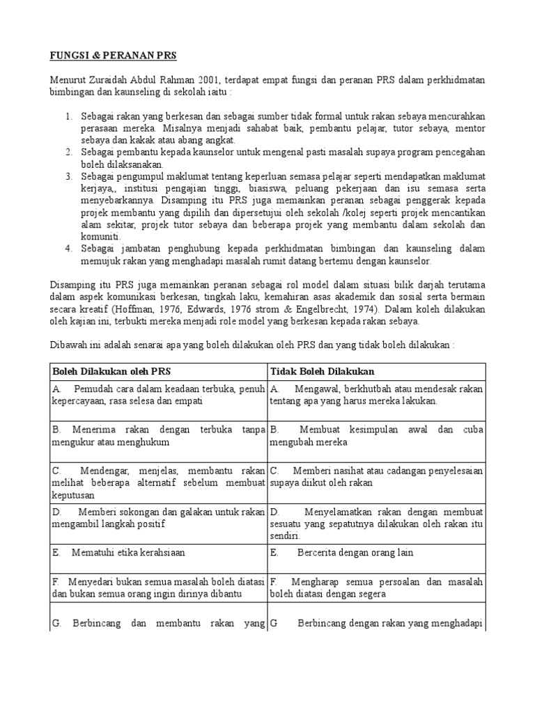 Membantu diri dengan membantu orang lain. Bilik bimbingan dan kaunseling taklimat khas kepada pembimbing rakan sebaya (prs) telah diadakan bertujuan mengingatkan semula kepada prs tentang uniform prs dan tugas prs. Pelan strategik kelab bk 2014 2016 cik bahari. Buku kecil ini memberikan anda serba sedikit panduan. Tugas pembimbing rakan sebaya (prs) merapati rakan sebaya dan mengenal pasti mereka yang bermasalah dan merujuk mereka kepada guru bimbingan dan kaunseling. Ringkasnya, pembimbing rakan sebaya adalah; Program disasarkan untuk pelajar menengah rendah yang terdiri daripada barisan prs, pengawas, ppda, ketua kelas & pengawas pusat sumber. Pembimbing rakan sebaya (prs) boleh membantu untuk meningkatkan lagi keberkesanan program bimbingan di sekolah. Program pembimbing rakan sebaya (prs) adalah satu program untuk melatih para belia dan remaja agar dapat menguasai kemahiran membantu supaya mereka dapat membantu rakan pelajar yang memerlukan pertolongan dari segi mental, sosial atau emosional, di samping melatih mereka membantu diri. 16 skop tugas pembimbing rakan sebaya. Pembimbing rakan sebaya akan diselia dengan teliti oleh guru kaunseling dalam masa mereka menjalankan tugas. ~menjadi pendengar yang peka kepada curahan perasaan rakan sebaya dan memberi sokongan emosi dalam keadaan krisis. Jika ada rakan yang berjaya dibimbing, maka pahala kebaikan juga diperolehnya.